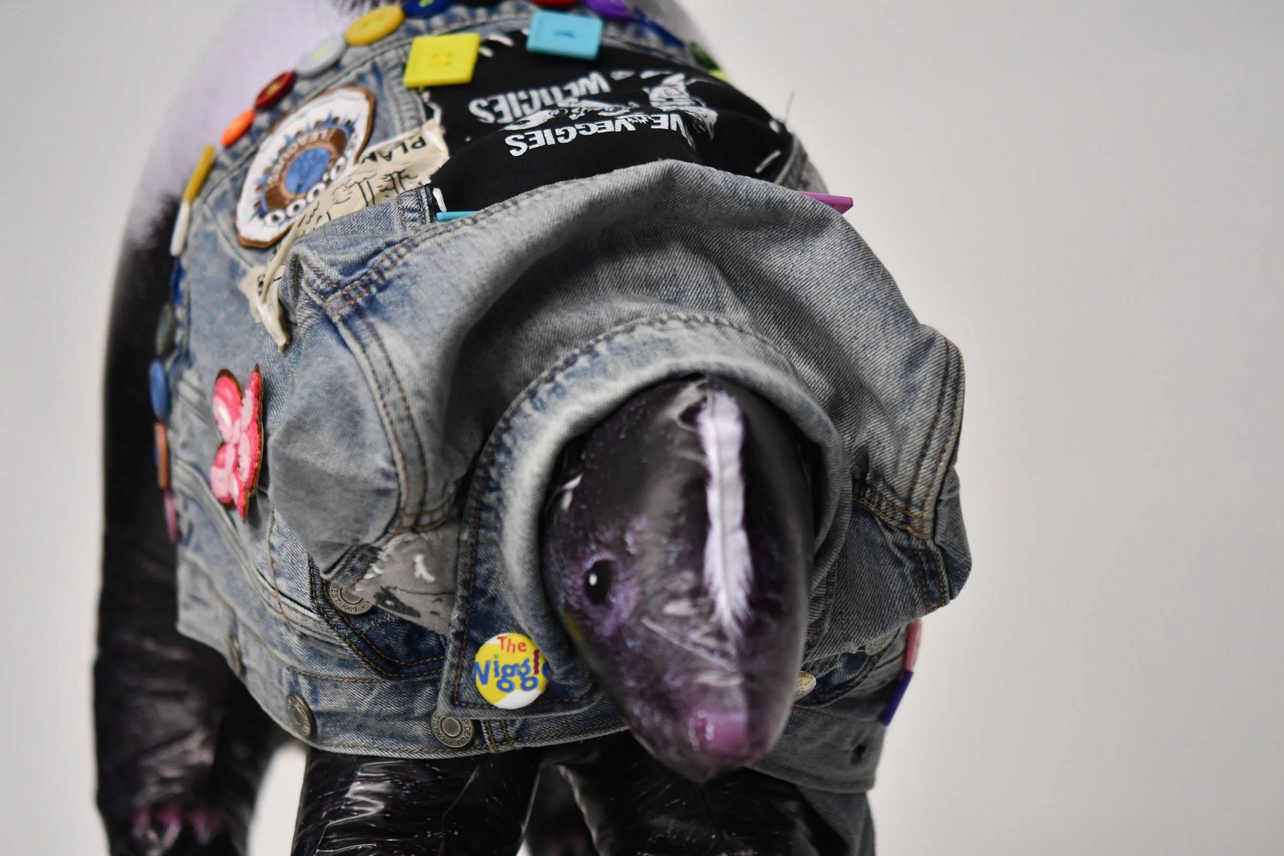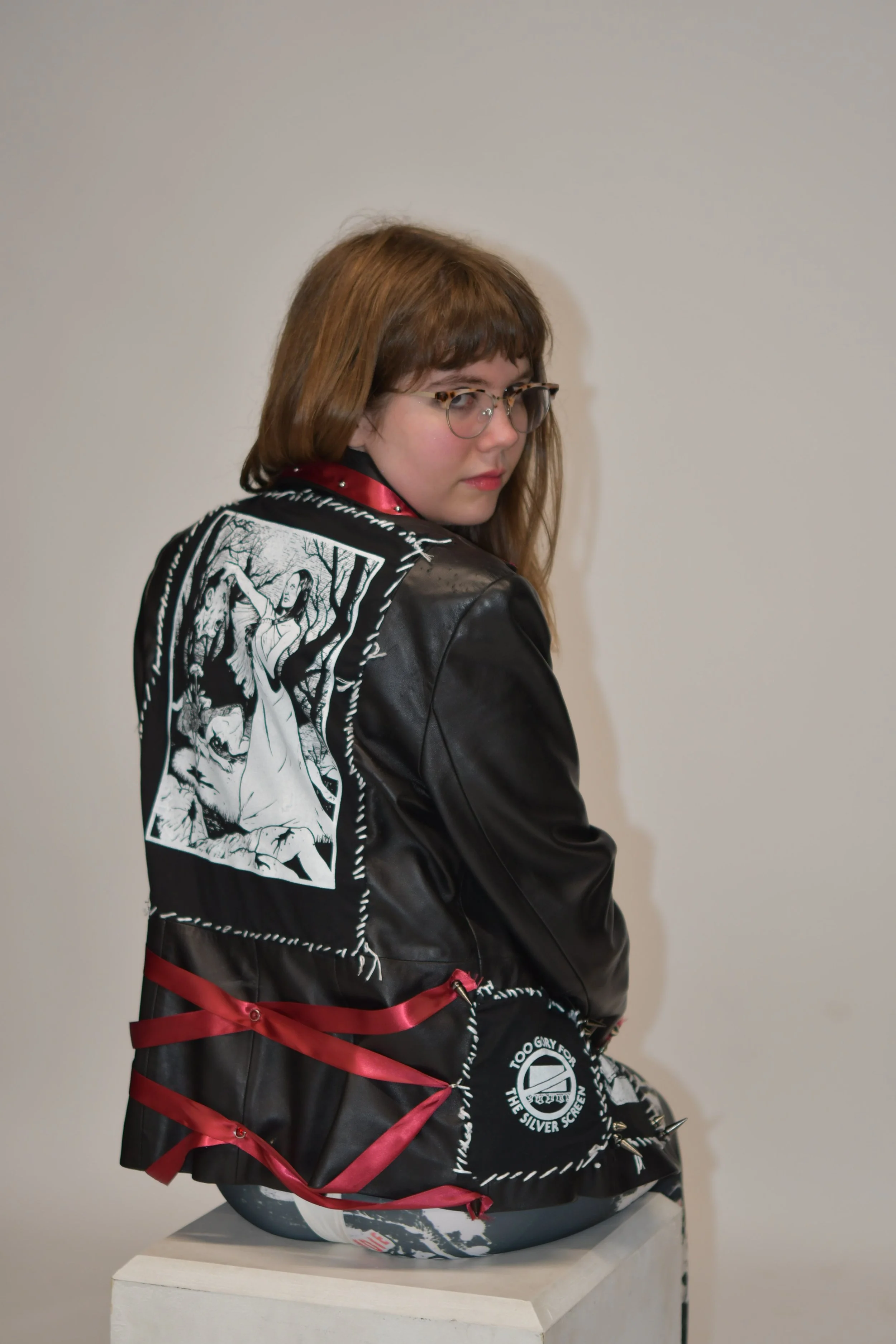 One of the first things you notice about a person is what they are wearing. Fashion is a significant way to express one's individuality. One way to express yourself and give a big middle finger to society is through battle jackets. Each jacket I made here has a particular motivation and aesthetic, from feminine rage to Friday 13th to a battle jacket a baby would wear. My installation centered this culturally significant garment, bringing together my work in music and fashion at College. It is my first battle jacket collection of many.
